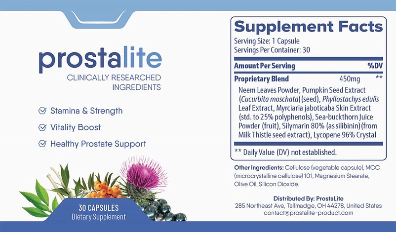 ProstaLite is a dietary supplement formulated with a blend of natural extracts like Uvaria Rufa Blume and Silymarin. These ingredients are selected for their potential to support prostate wellness. The capsules are designed for efficient delivery to help promote urinary comfort and overall vitality as part of a healthy lifestyle.